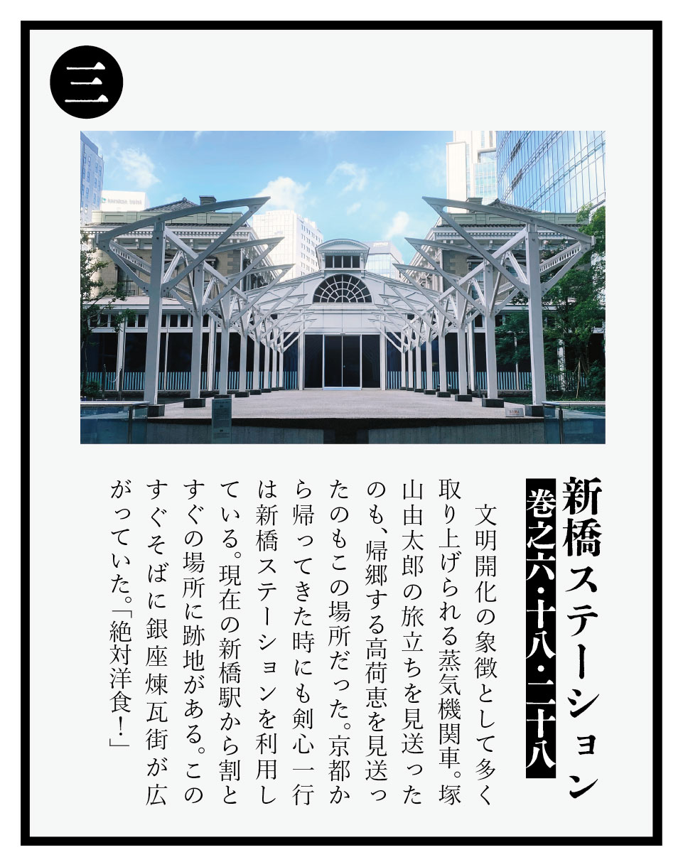 剣心が薫の肩を抱いて歩いていく先に恐らくあるであろう一石橋。現在の中央区八重洲一丁目。